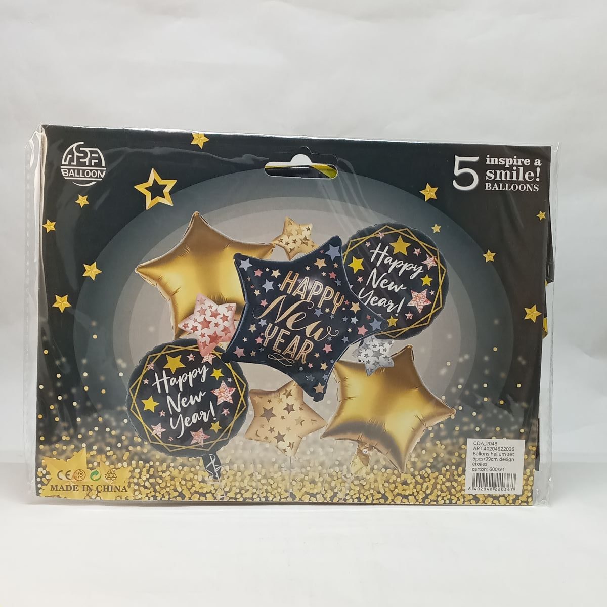 quantité de BALLON HELIUM SET HAPPY NEW YEAR 5pcs*99cm P21 11.22 *