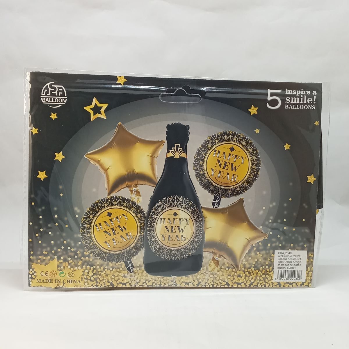 BALLON HELIUM SET HAPPY NEW YEAR CHAMP 5pcs*99cm P21 11.22 *