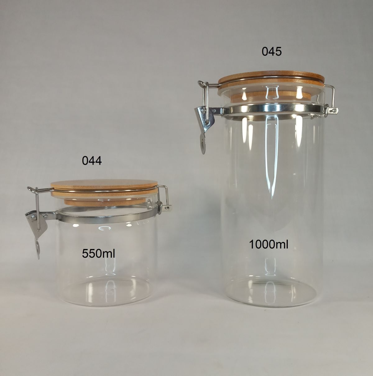 BOCAL VERRE 1000ml couv bois clip metal 100*200mm 50p/ctn P26 01.24 *