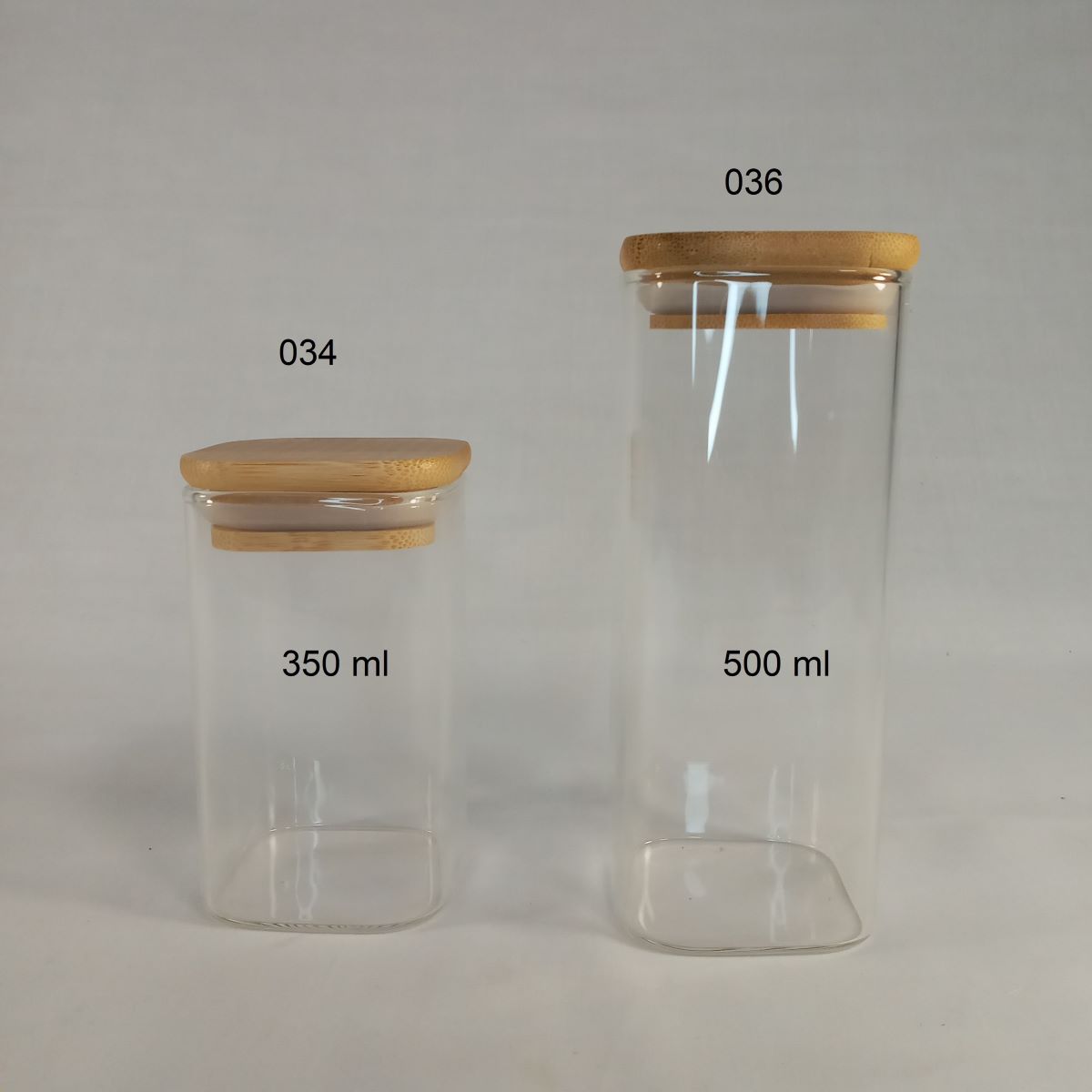 BOCAL VERRE CARRE 350ml couvercle bois 60*100mm 160p/ctn 1- P26 1.24*