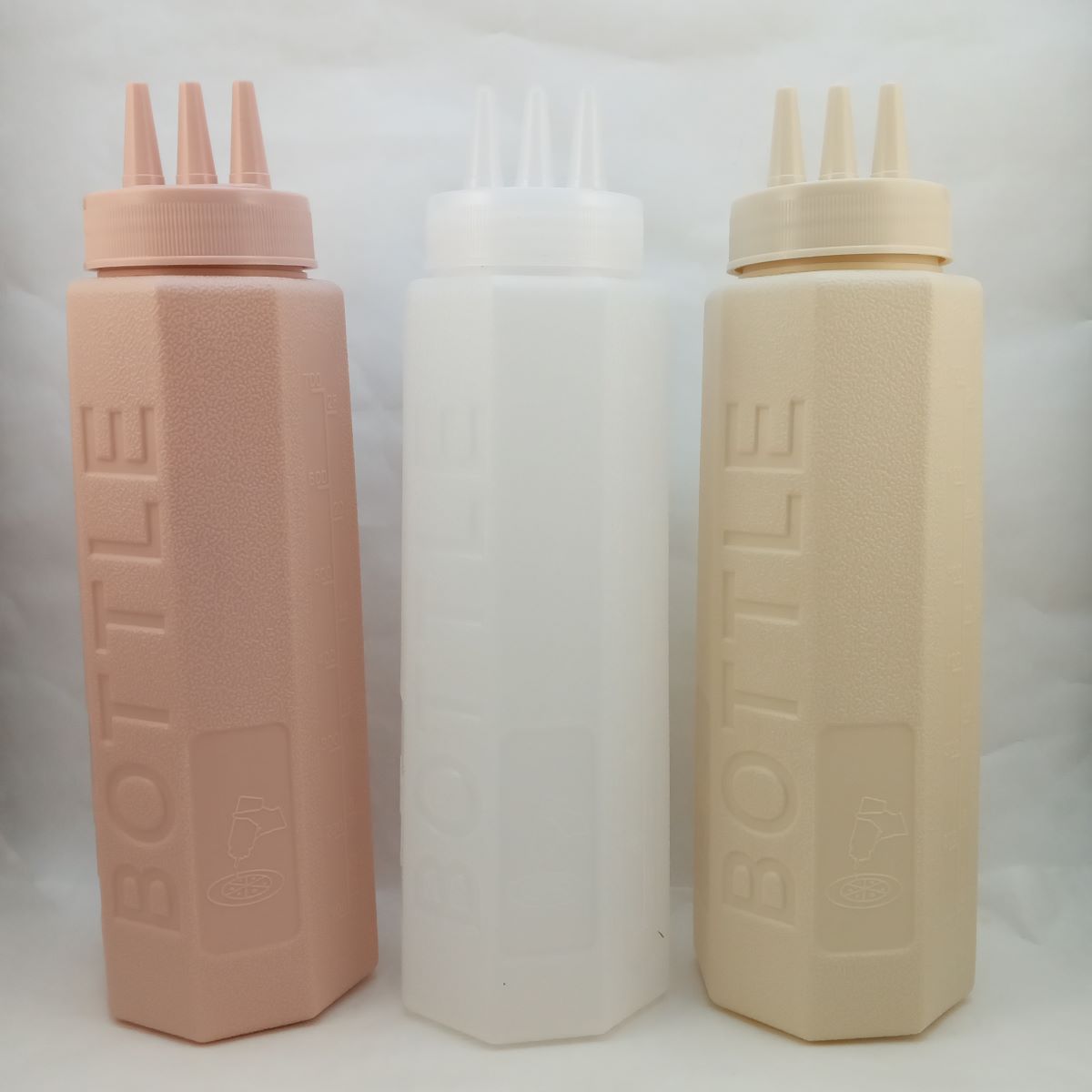 BOUTEILLE SAUCE coloré 3trous 880ml 3pcs/pack 48pcs P31 02.25 *