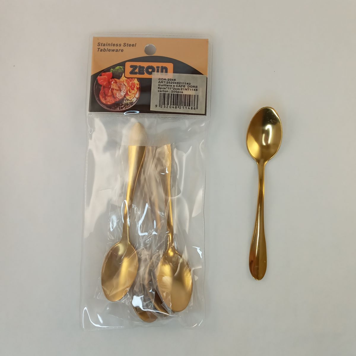 quantité de CUILLERE a cafe DORE 6pcs 15*4cm ZEQIN 100pcs/ctn P18 *RUP05.23