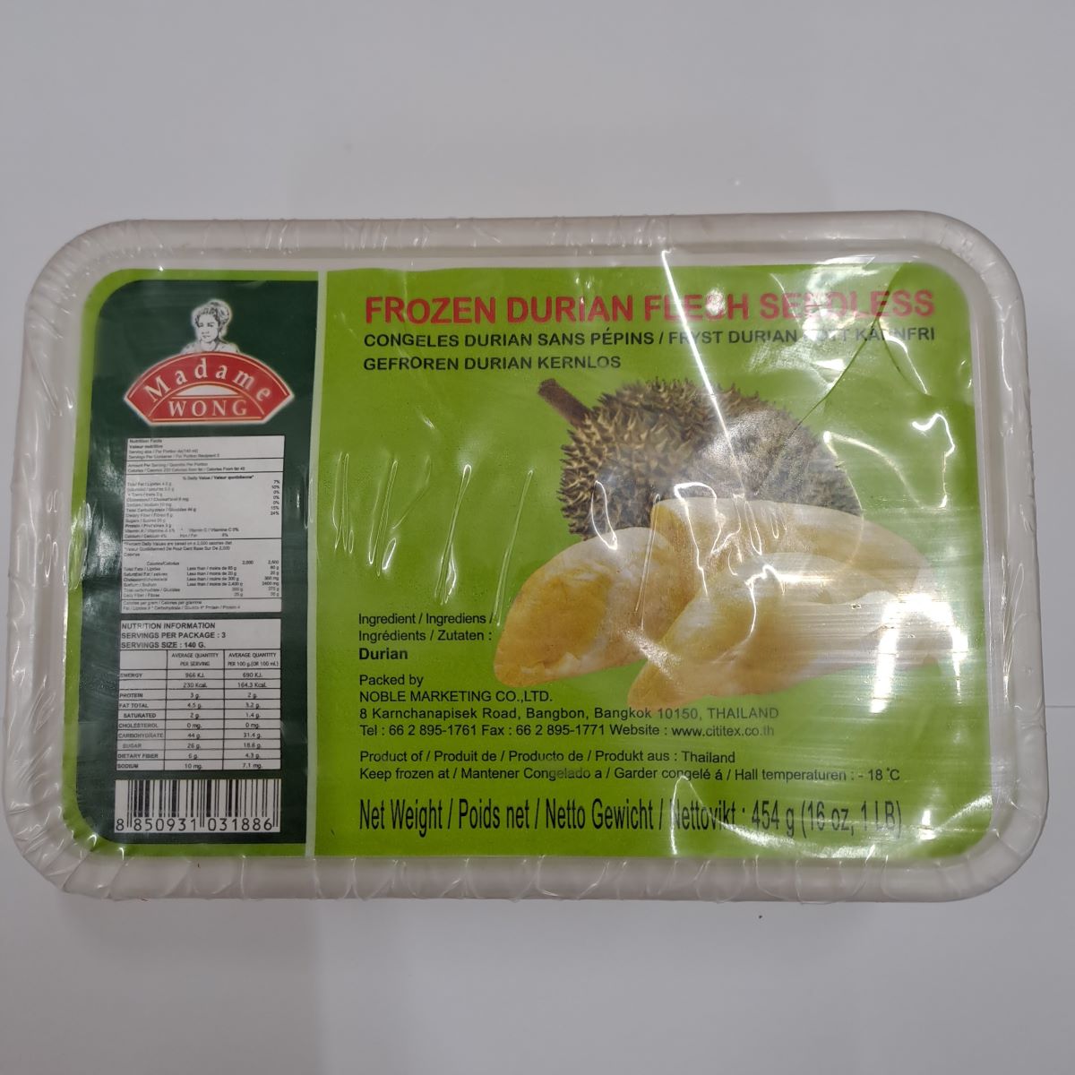 DURIAN DENOYAUTE BOITE 24/454g MAMA WONG durian seedless box 06.24 *